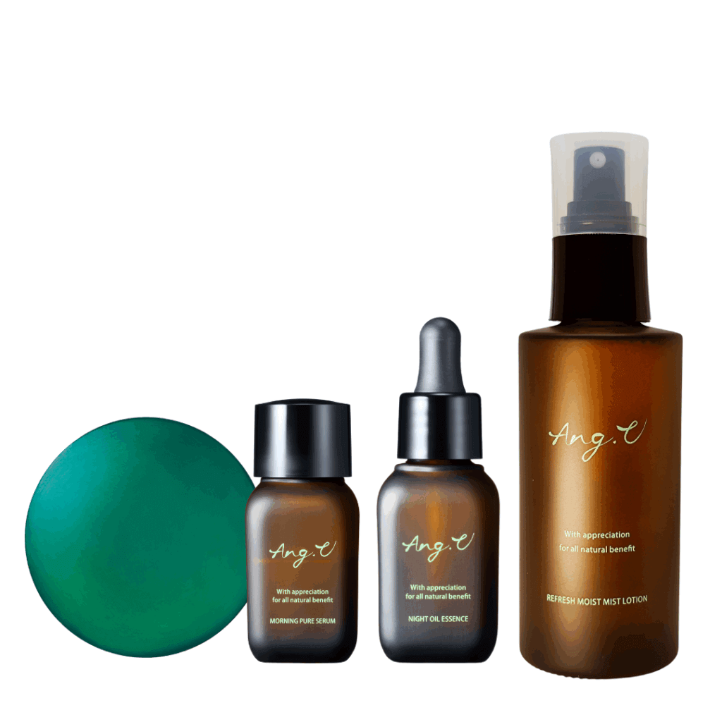 Ang.U(アンジーユー)のスキンケアは、農薬不使用のモリンガ種子から圧搾したモリンガシードオイルや、モリンガの葉を蒸留したモリンガエキスを主成分としています。肌、心、身体を浄化していくことが美肌への近道だと考え、本来の自肌力を引き出すことにフォーカスしています。